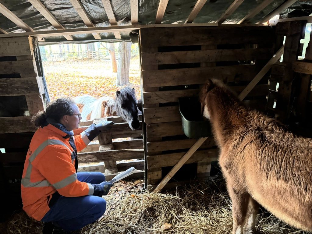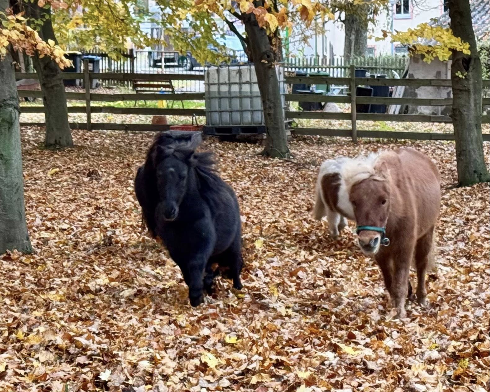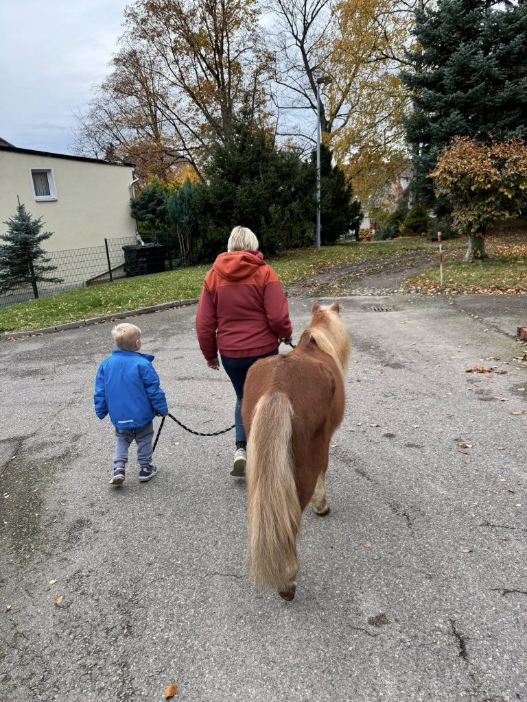 Unverhofft kommt oft! – Ihr Lieben, nachdem der erste Eingewöhnungstrubel ein bisschen vorbei ist, wagen wir es heute, euch unser neuestes uraltes Vereinsmitglied vorzustellen. – Kinderpony Max wurde kürzlich in Rente zu uns geschickt, und die genießt er gemeinsam mit seinem täglichen seniorengerechten Seniorenteller entschlossen und in vollen Zügen! – Damit das alles funktionieren konnte, waren in den letzten Wochen viele heimliche Helfer sehr heimlich aktiv, und so entstand in Rekordzeit unter tatkräftigster Hilfe einer Klasse Krankenpflegehelfer der SSA Chemnitz – Lene Voigt (Lisa und Marcel for Bundesbauminister!!!) Maxhütte, weil Ponyhausen für vier Herren wirklich etwas knapp geworden wäre. In diesem Domizil servieren wir nun täglich köstlichste Breikost, die Max ganz allein schlabbern darf. Deswegen trägt er inzwischen fast schon sowas wie ein kleines Bäuchlein.