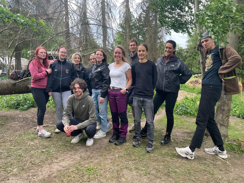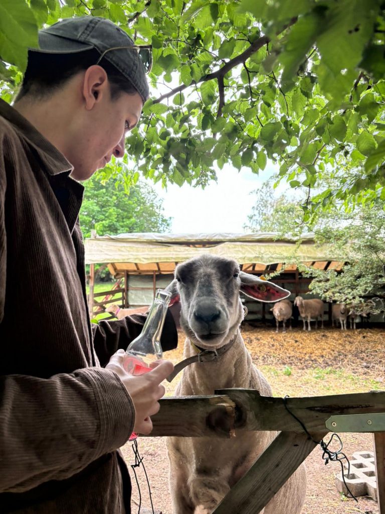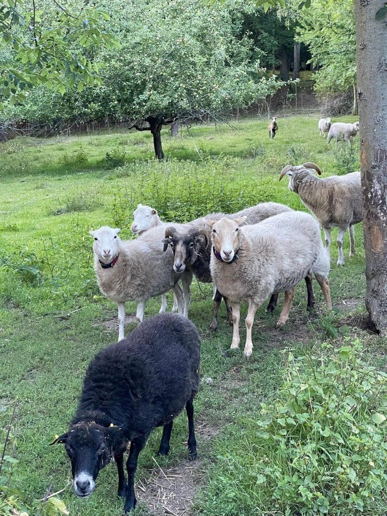 Nachdem wir vor einigen Wochen vom Veterinäramt einen kostenfreien Bescheid erhalten haben (Herzlichen Glückwunsch, Sie dürfen dieses Jahr auch mal am verpflichtend zu absolvierenden Brucellosetest teilnehmen!), waren wir zunächst etwas verstört, aber als lösungsorientierte Truppe schreckte uns das gar nicht! Zwar kann man nackte freiheitsliebende Schafe schlecht festhalten, aber dafür hat ein kluger Mensch „Halsriemen“ erfunden, die wir gleich nach der Schur an jedem Delinquenten angebracht haben. – Weise, weise! Weiteres Equipment für den kostenfreien Bescheid war dann ein Schafnetz für die erfolgreiche Jagd, und dank der einfach grandiosen Schüler/innen der Erzieherausbildung der SSA Chemnitz – Erz TZ 23 for LandwirtSchaf-tsminister!!!) und Dr. Dietz, der uns den Irrsinn Gottseidank sehr unkompliziert und sehr schnell zugesagt hat (DANKE!), ging heute ein wirklich ungeliebter Termin dennoch fröhlich über die Bühne. Schneller als alle Beteiligten dachten war das Procedere an allen drei Standorten überstanden, und inzwischen können auch unsere stichgeprobten angepiekten Schafe wieder lachen. – Bei einem gemütlichen Arbeitsessen klang der Großeinsatz auf der Wiese aus. Auf den Schreck erstmal eine Hartmannsdorfer Himbeerbrause und ein Hälmchen Gras! – Wir sagen DANKE an alle wunderbaren Menschen des heutigen Tages.